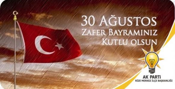 AK Parti Rize Merkez İlçe Başkanlığı 30 ağustos Zafer Bayramı dolayısıyla bir kutlama mesajı yayımladı. Tarihi zaferlerle dolu Aziz milletimizin 30 Ağustos Zafer Bayramını en içten dileklerimizle kutluyoruz. 97. yıl...